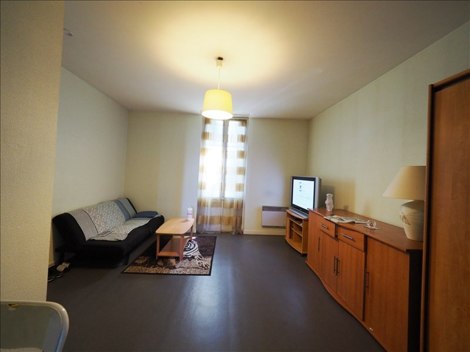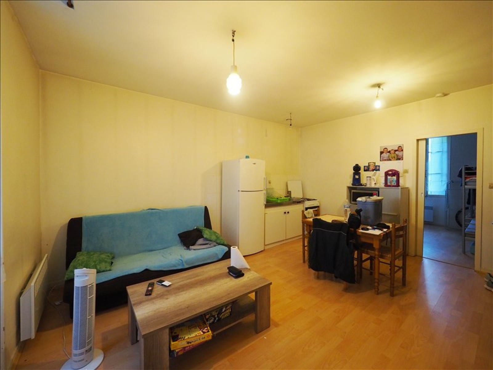 1 pièce de vie 20m², 1 chambre 8m² (c'est pas une chambre, 1 salle d'eau avec wc 3,8m²