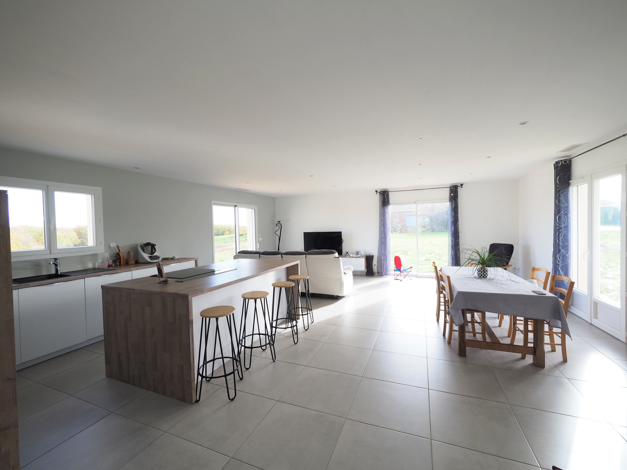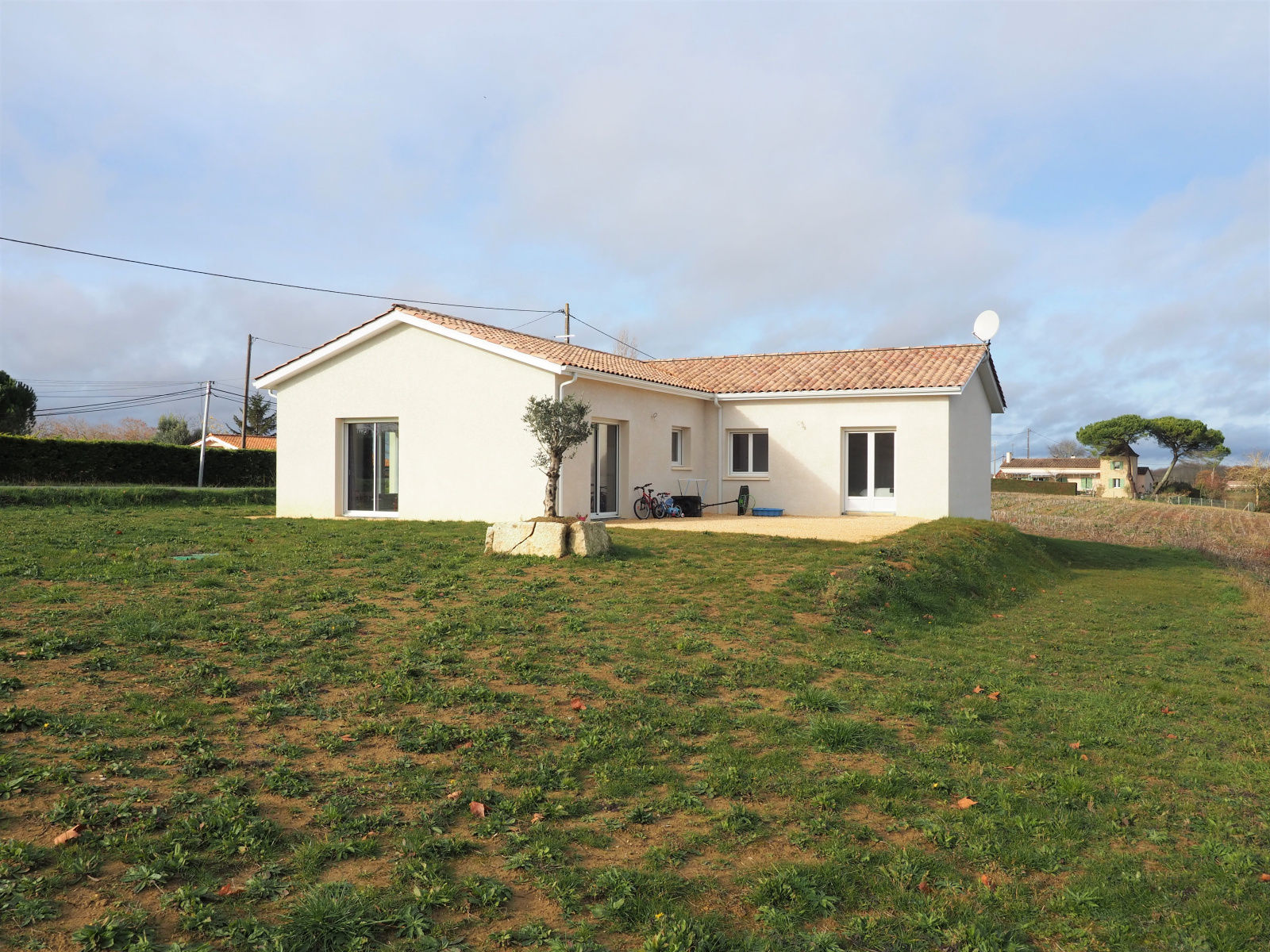 En campagne, non isolée, à 13 minutes de Marmande et à 2 minutes du village de Seyches, disposant de toutes ses commodités. Nous vous proposons cette agréable maison de plain-piedde construction récente (2018) aux prestations de qualité. Elle vous propose, une entrée, une spacieuse pièce de vie de 56m² avec cuisine ouverte équipée et son accès sur extérieur avec une vue dégagée sur la campagne environnante, trois chambres avec placard dont une chambre parentale avec dressing privatif, un espace bureau, une salle d'eau, un cellier, un wc, un garage et dégagements. A l'extérieur vous trouverez un terrain de 1500m² à arborer avec places de parking extérieur gravillonnées. Assainissement micro station, chauffage clim réversible en gainable, vide sanitaire sous la maison, volets roulants électrique. Nous restons à votre disposition pour toutes demandes complémentaires ainsi que pour l'organisation de votre visite.