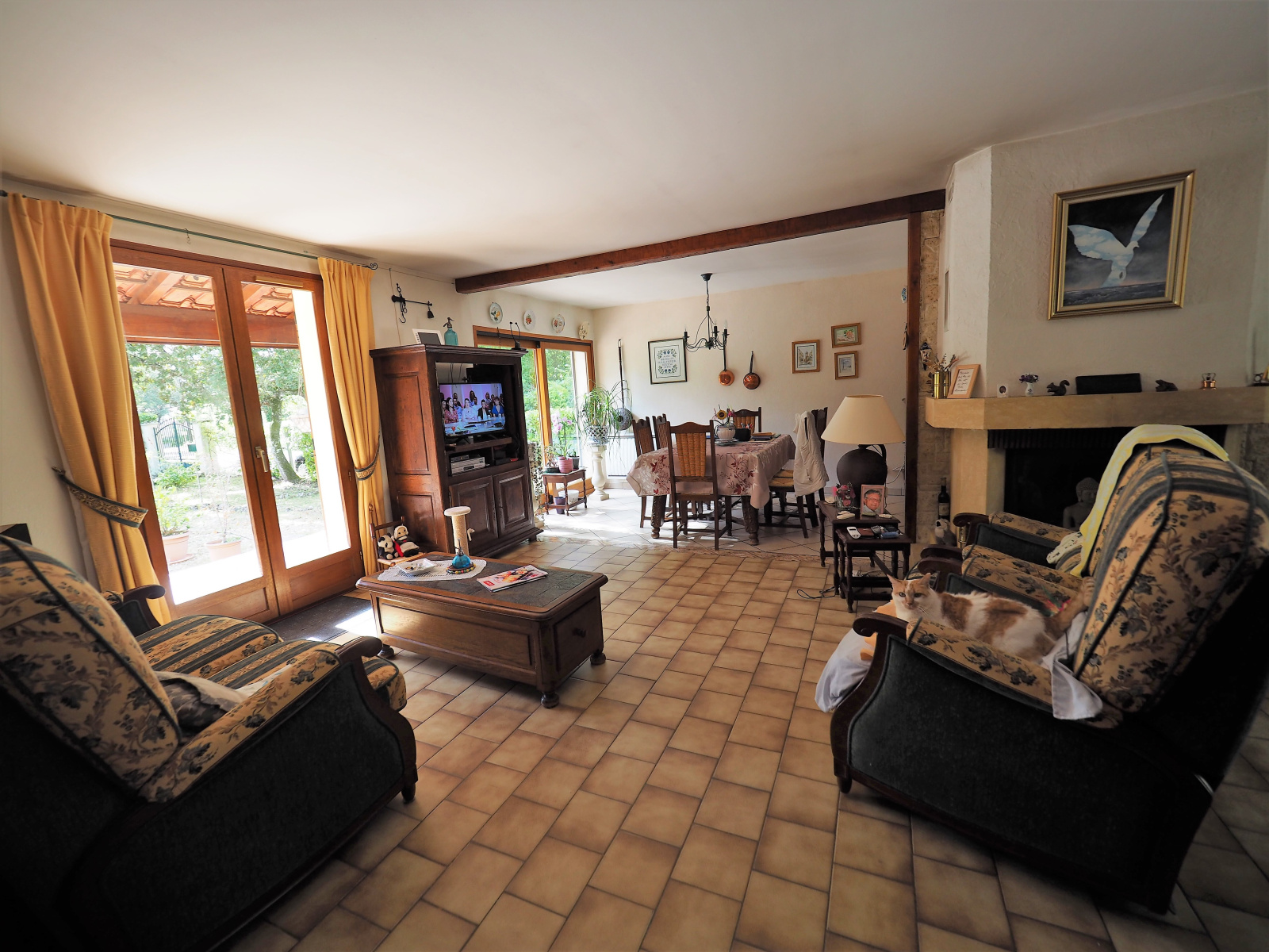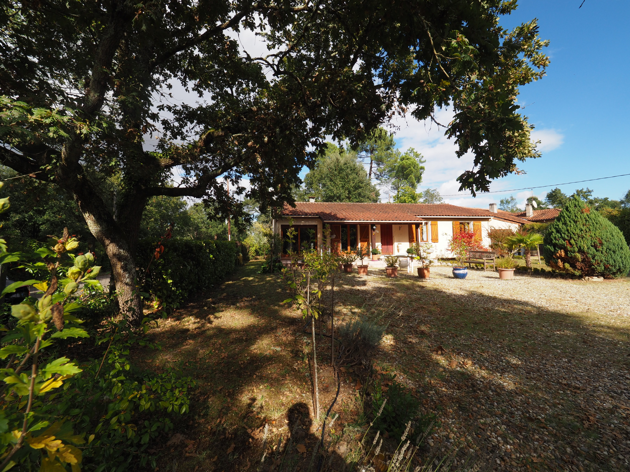 Proche échangeur autoroute, maison de plain pied au milieu des bois comprenant une entrée; un grand salon séjour lumineux, sur cuisine ouverte, un cellier, 3 chambres, wc et salle d'eau. Agréable terrasse au calme avec petit garage attenant et jolie jardin arboré.