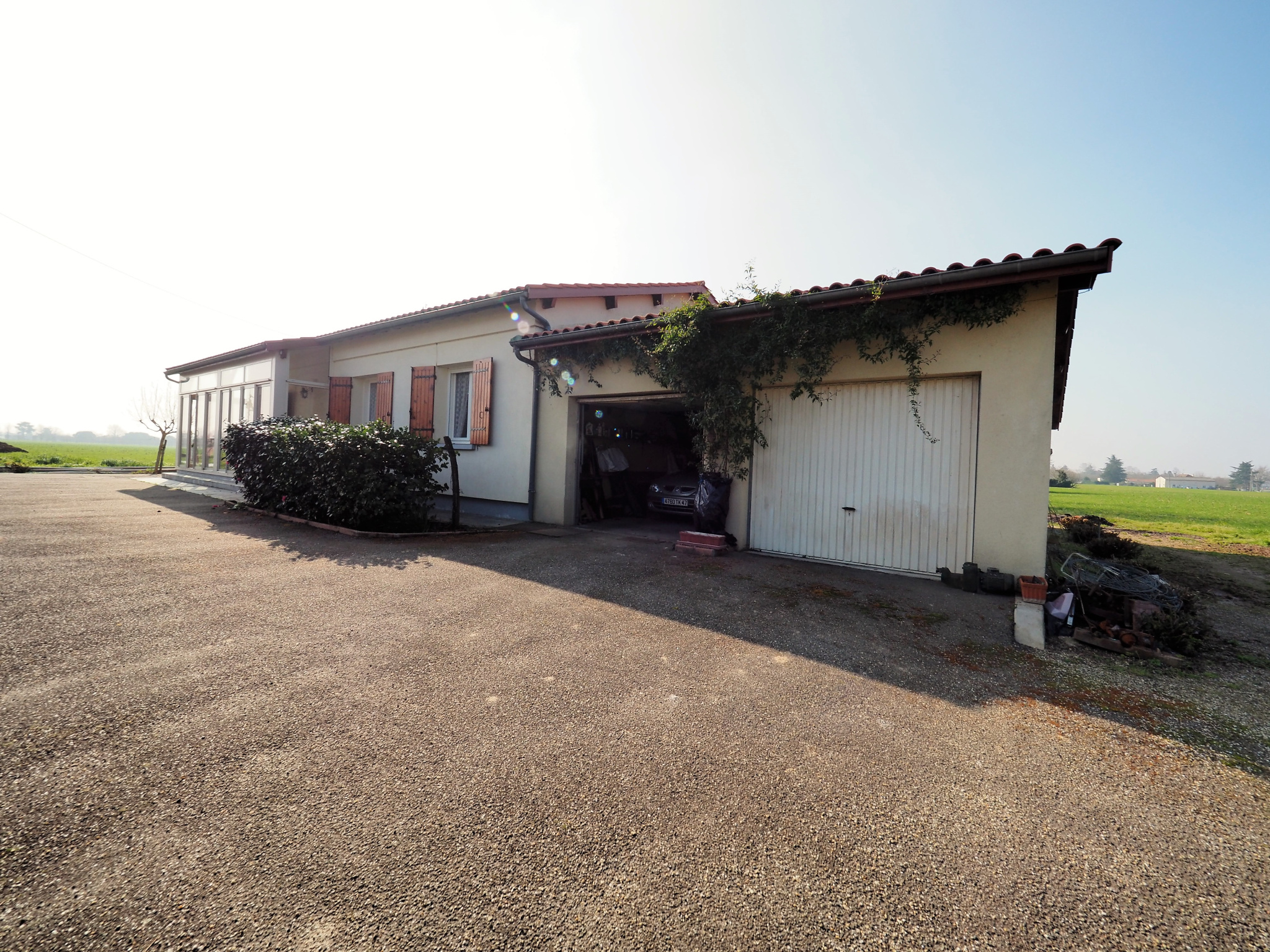 Aux portes de Marmande au calme en campagne, et proche de toute les commodités, maison de plain pied comprenant un salon séjour lumineux, cuisine, 3 chambres, cellier, wc et salle d'eau. Double garage attenant. La maison est entouré de champs sans aucune nuisance sonore. Elle est bien entretenu et nécessite un simple rafraichissement.