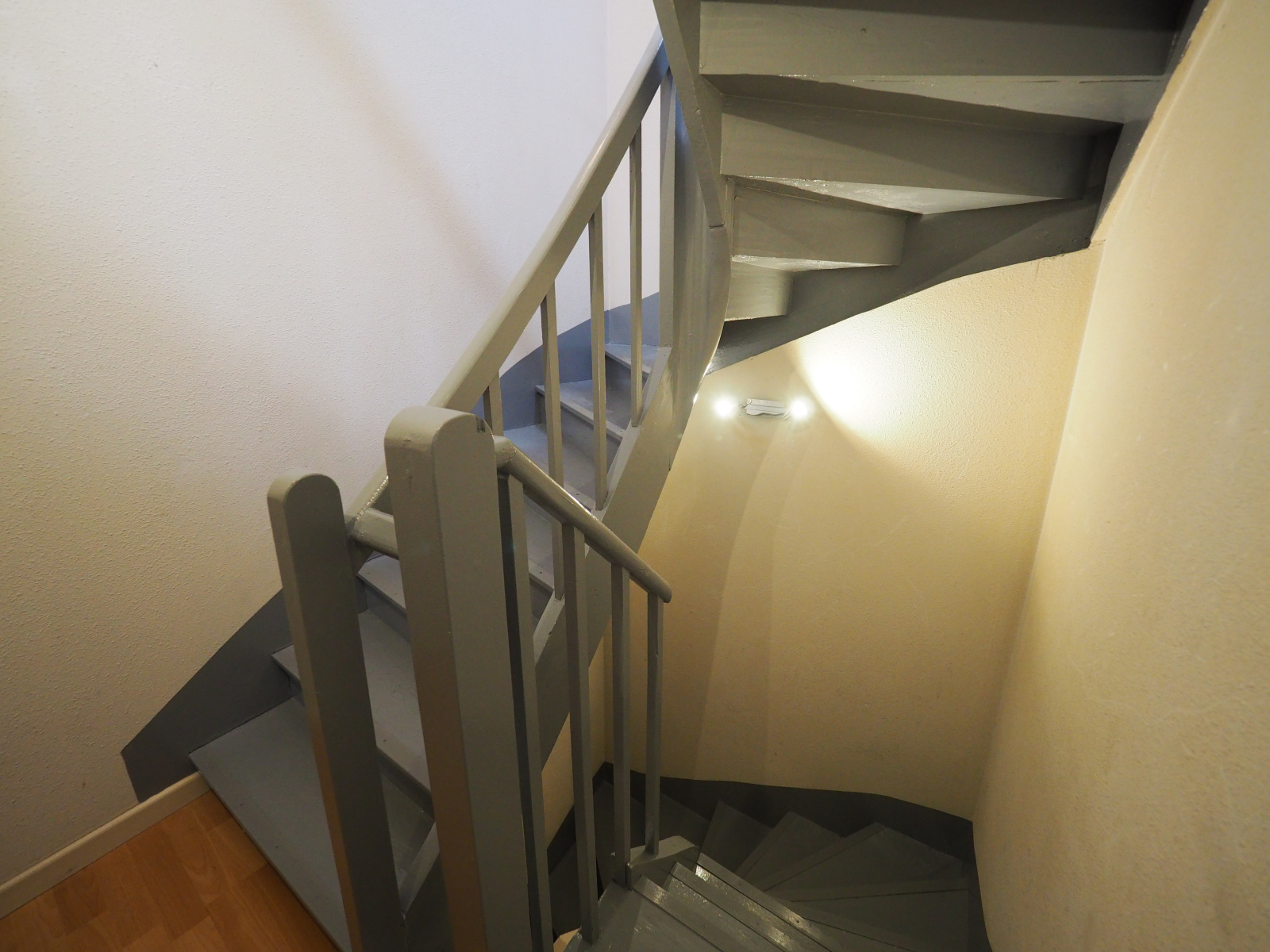 Elle se compose au rez-de-chaussée : d'une pièce de vie comprenant un salon-séjour avec rangements et cuisine ouverte équipée, un wc et un espace pour lave linge.