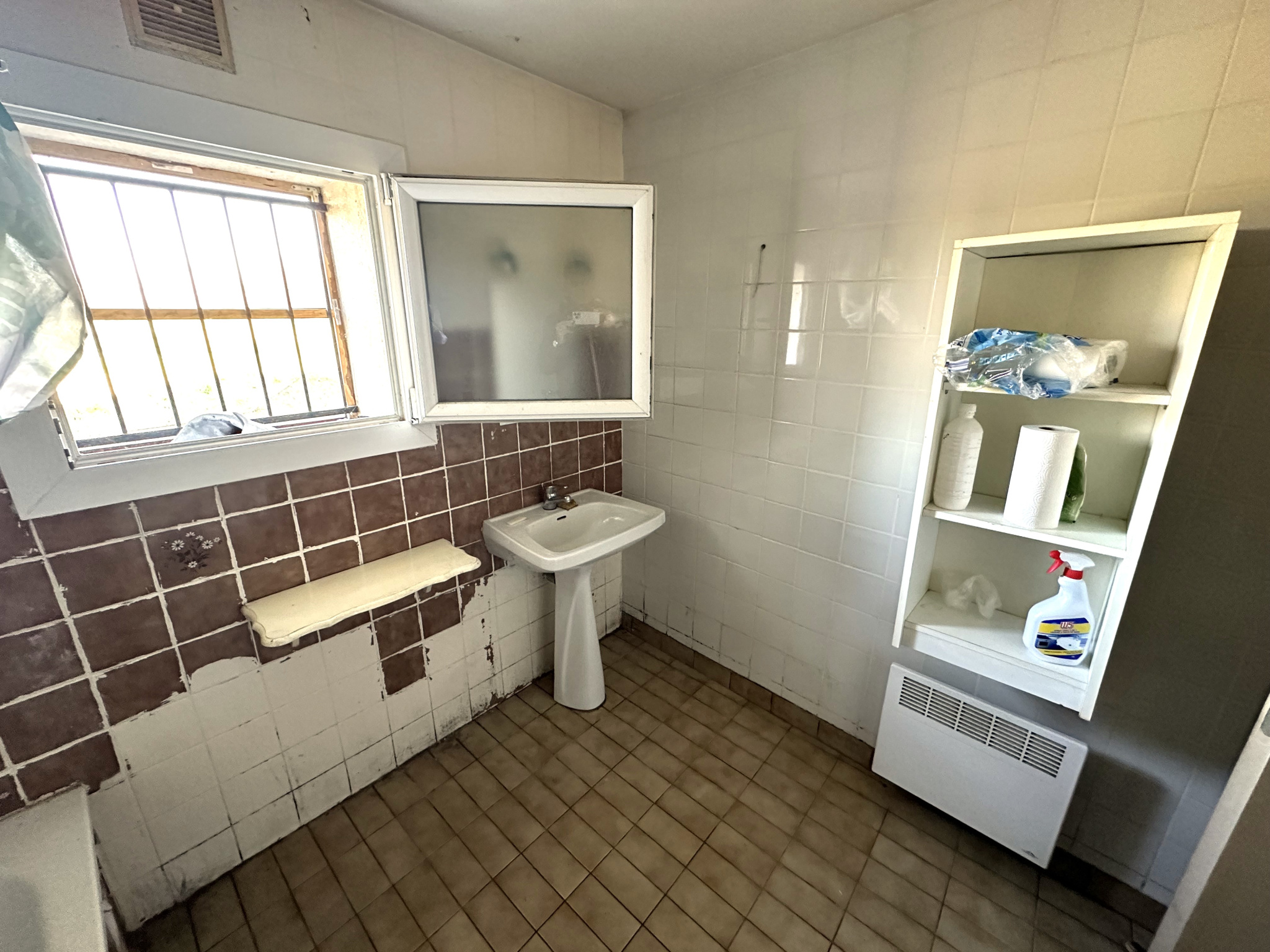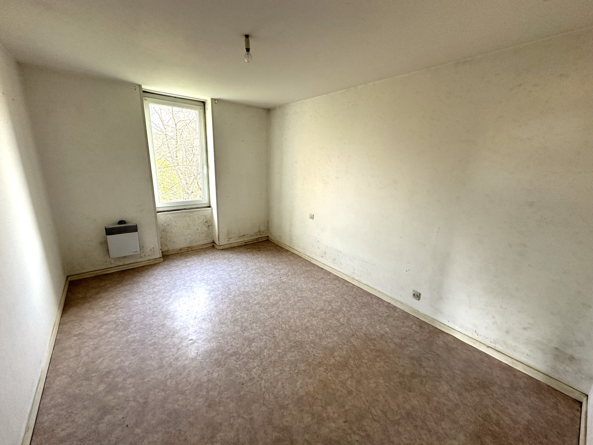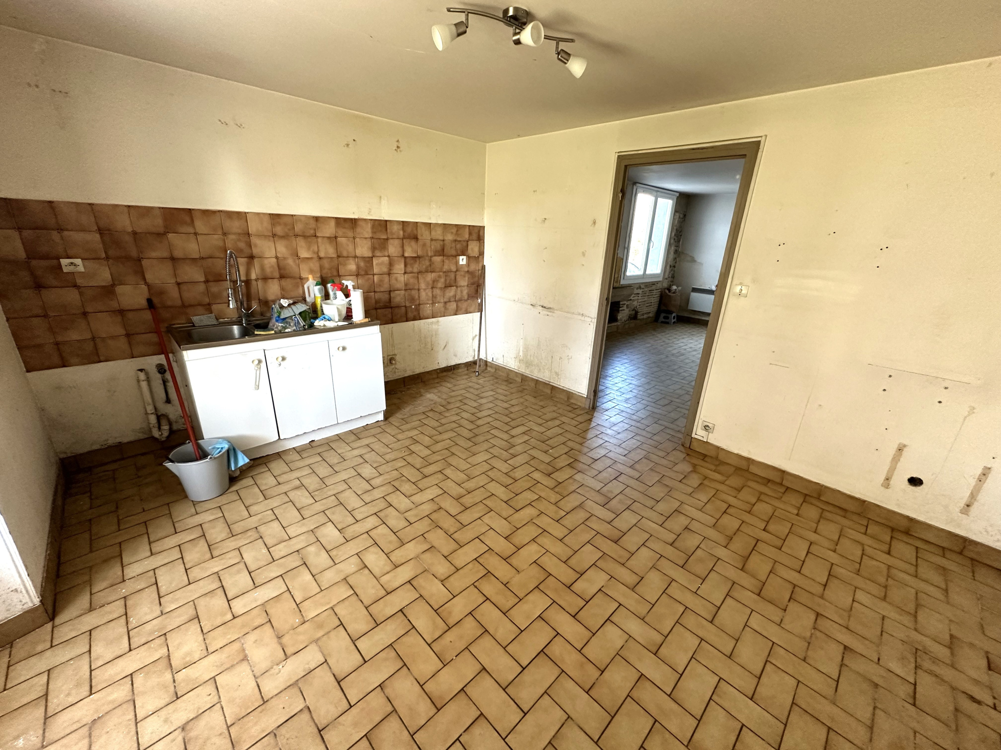 À la campagne, proche autoroute, sur un chemin rural avec des champs, des bois en contrebas, nous vous proposons cette maison de plain-pied à rénover. Elle se compose d'un salon séjour, une cuisine, deux chambres, une salle de bains, un bureau, un WC. Sur l'extérieur un garage et une grande terrasse couverte de 30 m².