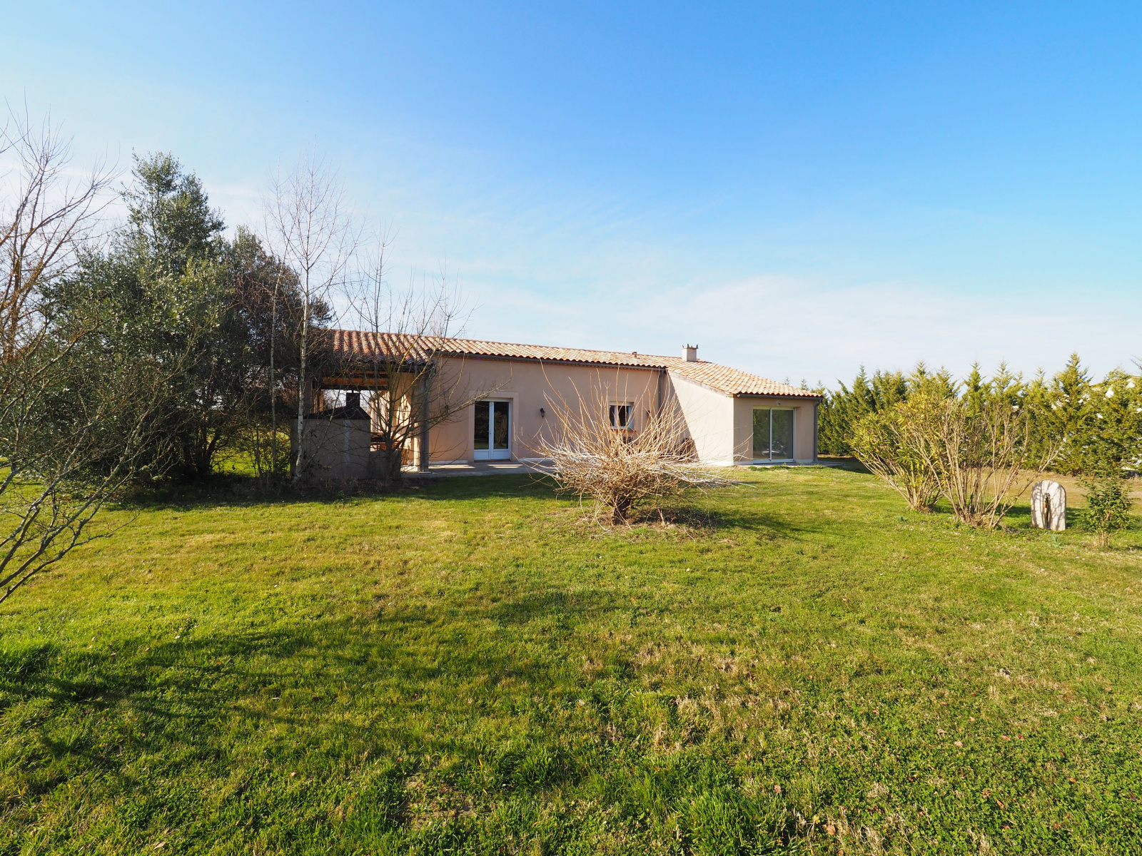 De belles prestations pour cette maison : chauffage au sol, toiture neuve, isolation récente des combles, double vitrage, portail d'entrée et portails garage électrique, pourtour bétonné autour de la maison.