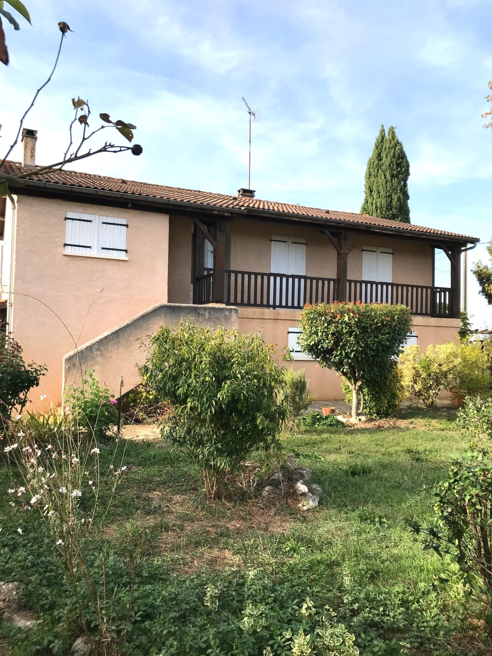 À cinq minutes de l'échangeur d'autoroute, cinq minutes de Marmande, dans une impasse, au calme, à proximité des commodités et école, cette maison des années 80 se compose : au rez-de-chaussée : d'une entrée, deux pièces, une cuisine d'été, un WC, un garage et une terrasse couverte. À l'étage : une entrée, une cuisine ouverte sur un salon séjour avec cheminée, une véranda, trois chambres, une salle de bains avec douche et baignoire et un WC. À l'extérieur un garage non-attenant, un jardin arboré et clos avec une piscine à rénover.