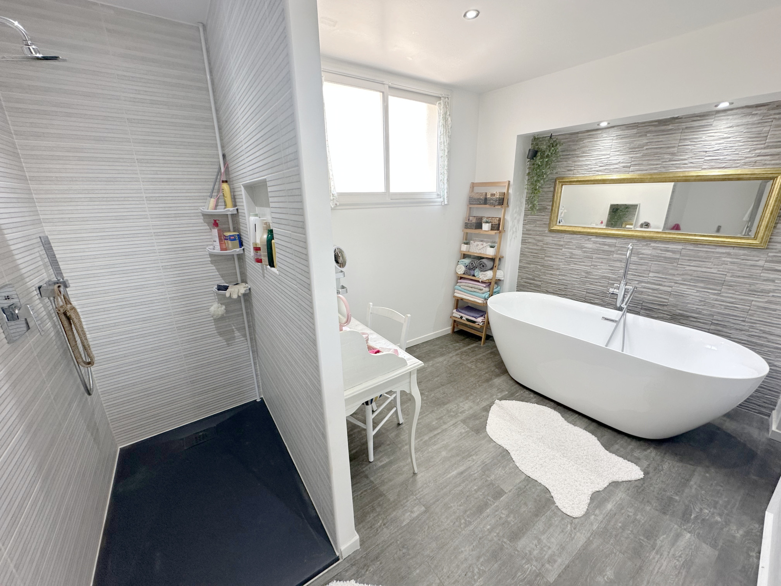 À l'étage, trois belles chambres lumineuses avec placards vous attendent, ainsi qu'une superbe salle de bains équipée d'une douche italienne, d'une baignoire et d'un WC indépendant.